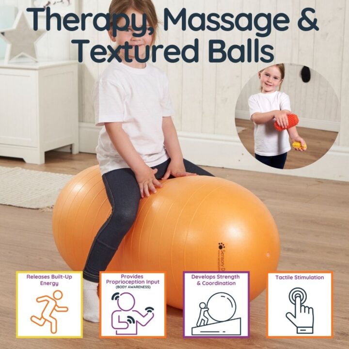 Therapy Balls offer a wide range of movement and balance activities that support both physical development and sensory needs.